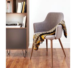 Fauteuil De Table Sixty Gris Pieds Chene Fonce Chaise But