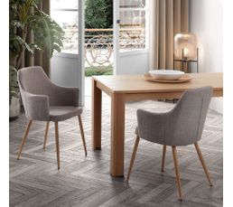 Fauteuil De Table Sixty Gris Pieds Chene Clair Chaise But
