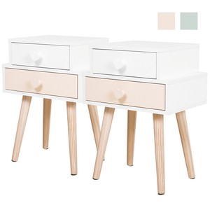 Lot De 2 Table De Chevet Avec 2 Tiroirs Style Scandinave Table