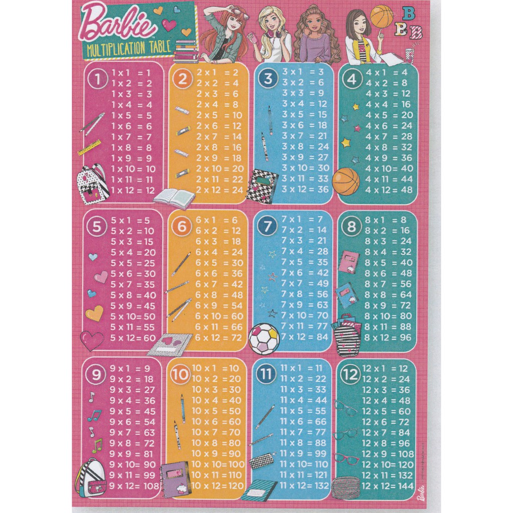 Barbie Wall Chart Times Tables Practise Your Times Tables With