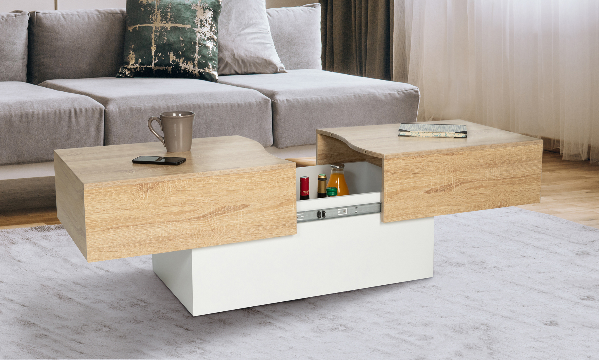 Table Basse Coulissante Maria Bois Blanc Et Gris
