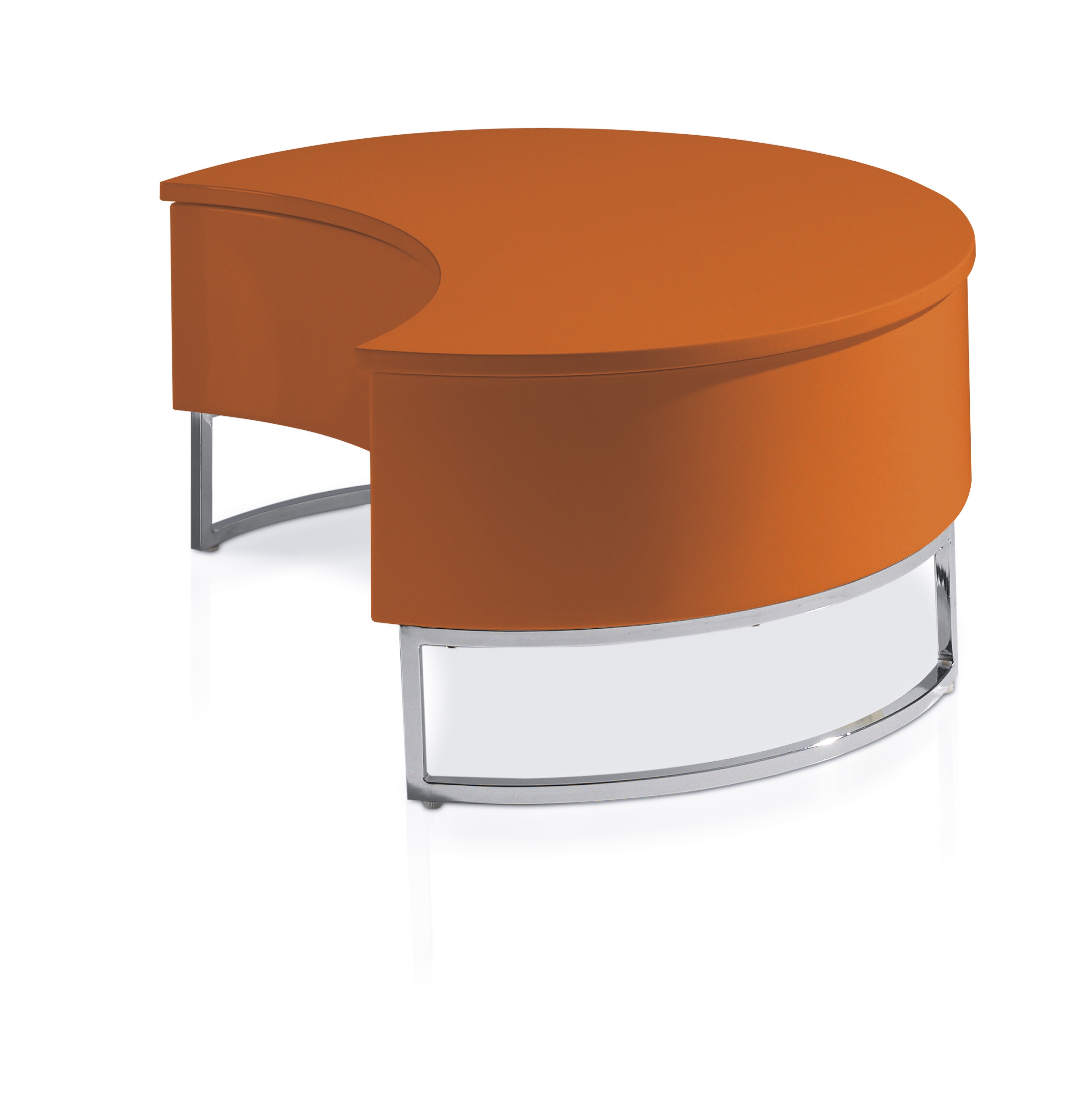 Designer Table Basse Relevable Laquee Orange Pied Acier Chrome