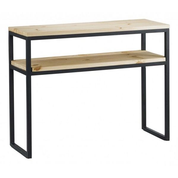 Table Console Moderne Bois Massif Pietement Metal Noir Pour