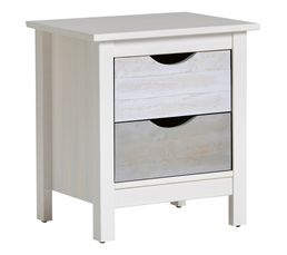 Table De Chevet Blanc En Bois Massif Avec 2 Tiroirs Gris H42 X