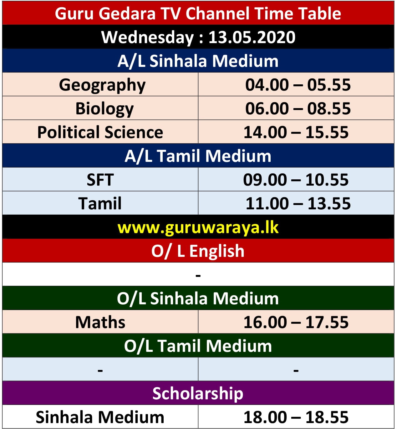 Guru Gedara Educational Tv Channel Time Table 3rd Week Teacher